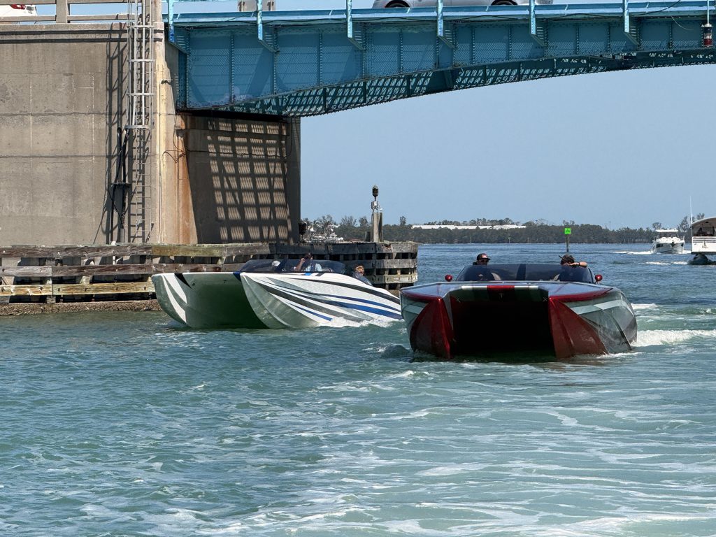 Just two of the catamarans arrived at their destination as a broken transmission sidelined Beischel and company on the outbound leg. I knew the Ohio-based electrician is handy tools—he built the 900-hp supercharged engines in 368 catamaran as well as the trailer that carries it—but I had no idea he is part Boy Scout. The guy came to Tampa with a spare transmission in his truck, for heaven’s sake.