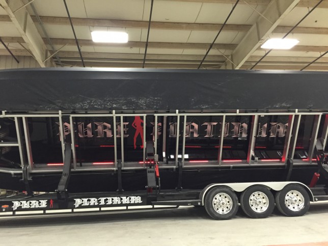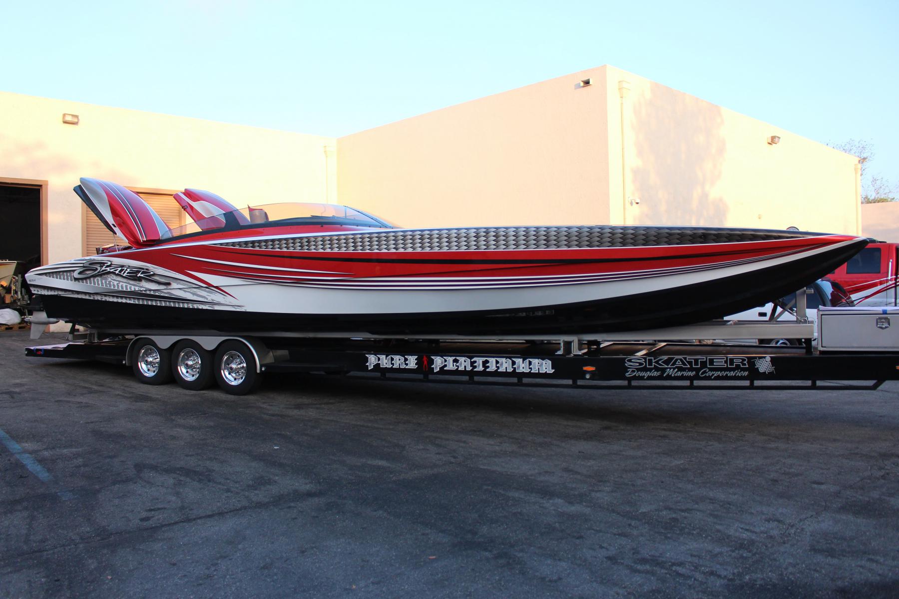 PowerBoat Nation is excited to at last reveal one of the most secretive boat builds ever and now take the cover off Bill Pyburn Jr. Brand new 388 Pure Platinum Skater, this is the second boat in the Platinum Edition Series and is the result of thousands of hours of work from a long list of craftsman and vendors.