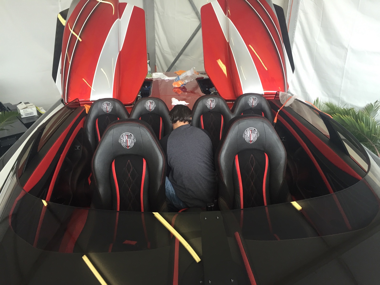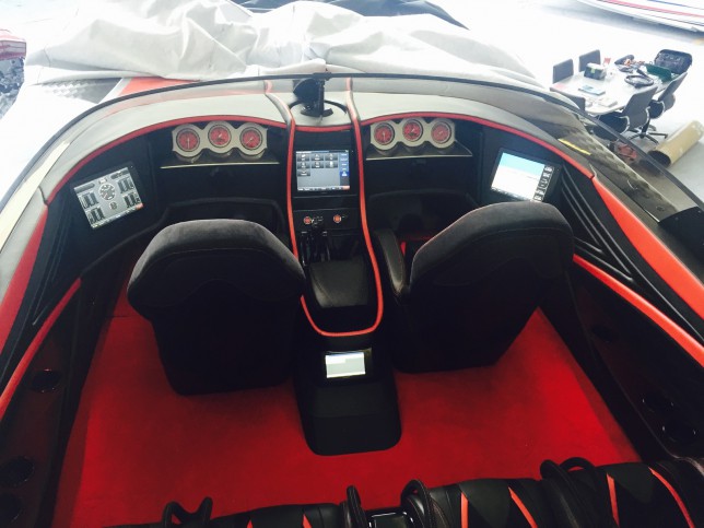 The build had to have great detail and the interior had to rival a Lamborghini or Ferrari and be nothing of a boat we’ve ever seen before. Designed and built by Jamie Borg of Cutting Edge Upholstery Inc, Jamie has spent countless hours a record amount of time. I am sure of unbelievable amount of time creating art in an interior of a boat.