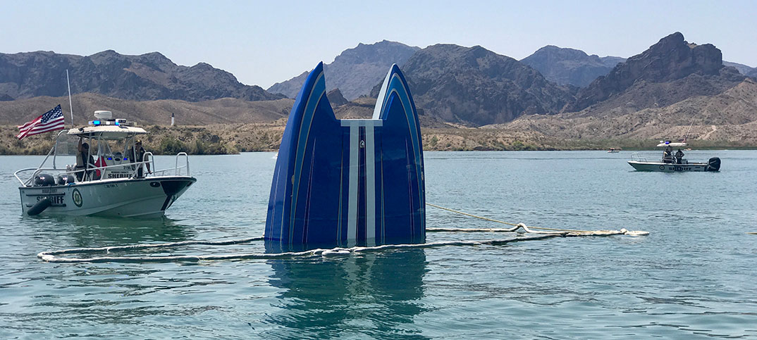 Earlier today on Lake Havasu a boating accident involving a jet ski and the 36′ catamaran performance boat “Cállate” that has resulted in injuries to the boat’s owner Larry Guillen, project manager Brad Stewart and one other unnamed passenger.