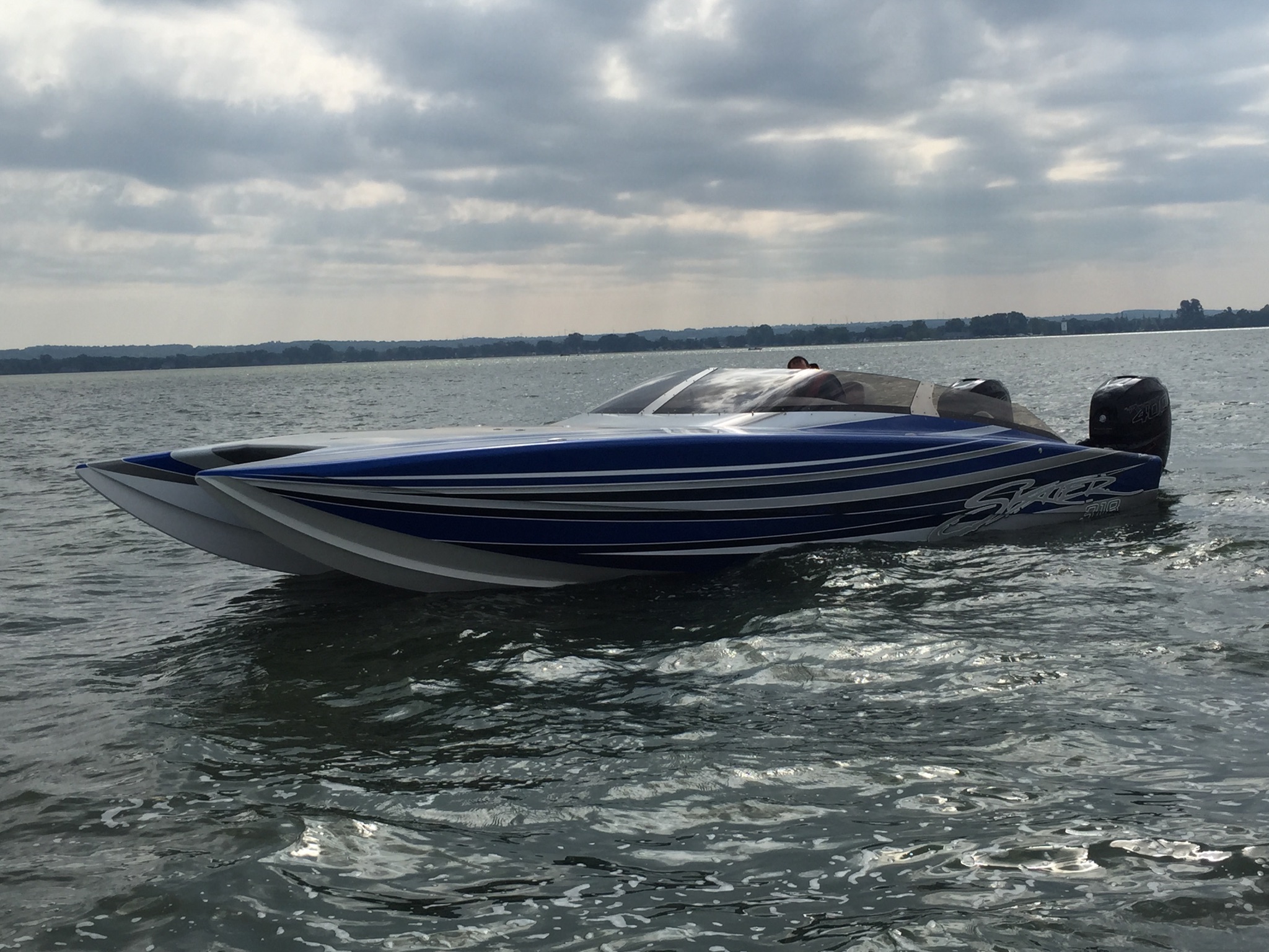 Beyond the speed numbers the big take away from today’s testing was how well this 31ft 8 inch boat with a 61 1/2 tunnel handled and ran. This new Skater is sure to be a winner all the way around….