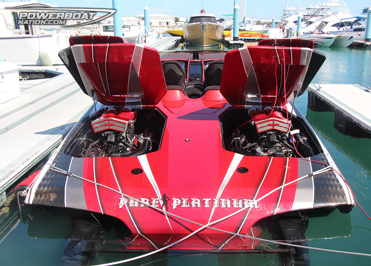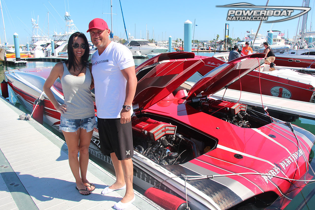 New owners Michael and Nikki Pierce from Baton Rouge turned heads this week with their recently acquired 388 Skater “Pure Platinum” previously owned by Bill Pyburn.  Michael has been looking for a new cat for a long time and when the prospect of buying THE Pure Platinum came along the search was over! They brought the high horsepower SKATER to Key West this year and it’s looking better than ever! With tons of accessories and upgrades as well as massive Goodwin Competition Power there’s no denying that Pure Platinum is one of the biggest, baddest powerboats to have ever been built.