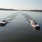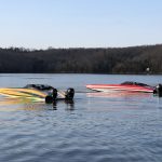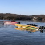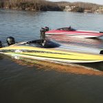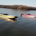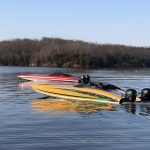So we did one practice run, followed by some shootout-style passes. That’s when you’re starting at 40 mph. We were perfectly next to each other, with both of our phones on speaker. Brett Manire and Mark Waddington were floating in the main channel in their Sea Ray and we made the passes by them, running up lake and down lake. Then, from about 40 mph, with the trim up, we both just floored it. From that time, and for about a mile, Myrick in the 450 boat was pulling away the whole time. Within a half a mile, he was 6-7 mph faster than I was. Eventually he was going 123 and I was going 117. It was pretty cool.