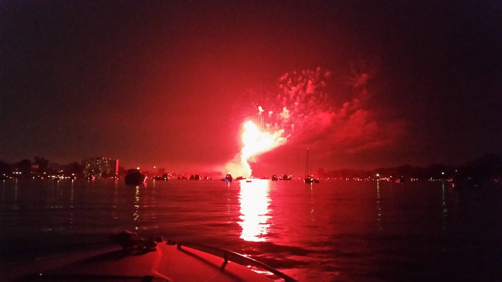 View of the fireworks on the Detroit River in Trenton, MI.Hook’em definitely accurately captioned his own photo when he sent this in – “Classic Americana.”