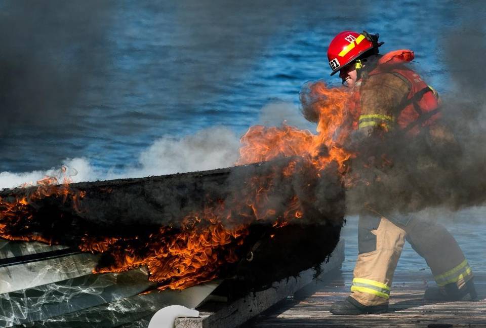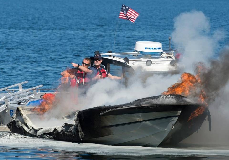 Five teenage boys and a man were using the boat for inner tubing on Lake Whatcom when the 17-foot fiberglass boat burst into flames. The passengers immediately exited the boat after hearing a loud pop from the inboard motor before it exploded, turning the boat into an inferno.