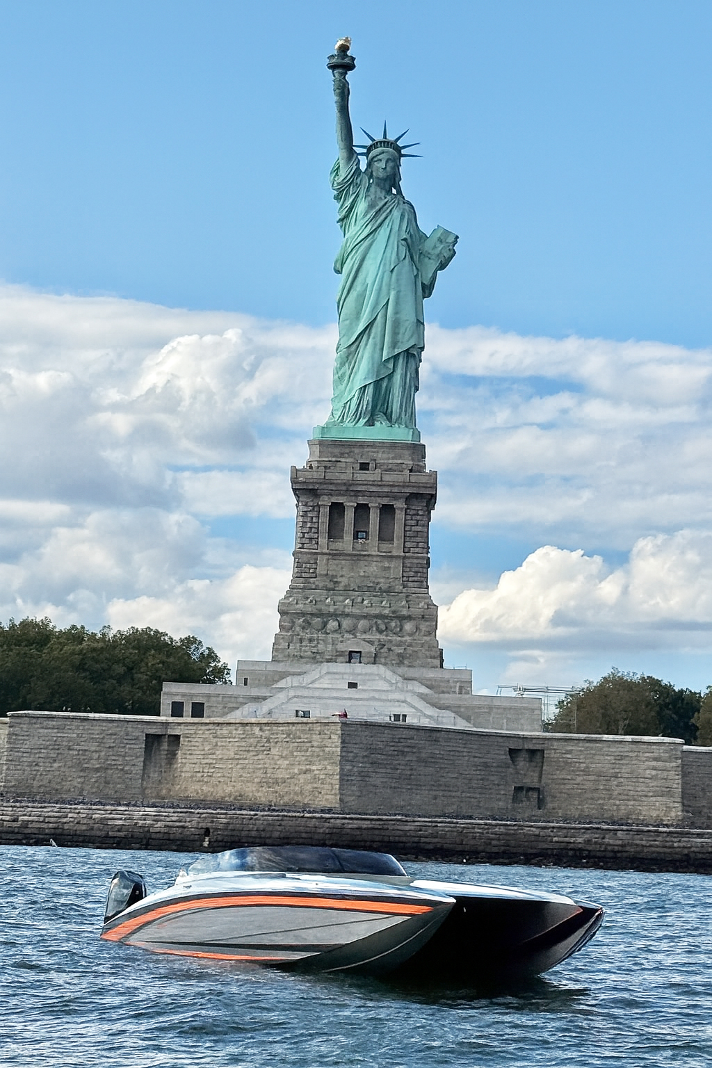 With Lady Liberty look over them, members of the Lake Champlain Poker Run organizing enjoyed a short but essential fun run on the Hudson River.