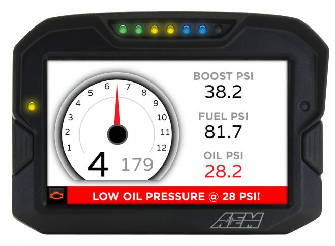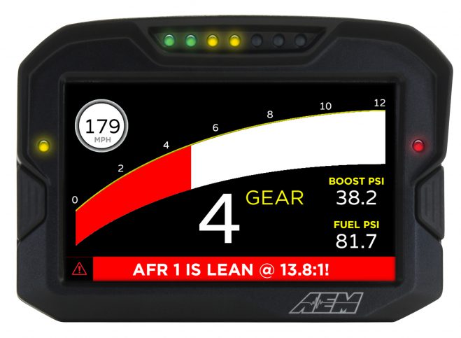 Hardware validation means that AEM has tested a 3rd party device in house and verified that it will communicate seamlessly with the CD-7 Digital Dash. In addition to hardware-validated 3rd party devices, AEM also has manufacturer-supplied 3rd party CAN protocols for dozens of additional devices. A complete list of 3rd party applications that the CD-7 will communicate with is available on the company’s website (click the “Supported Apps” tab on the CD-7 Dash page).