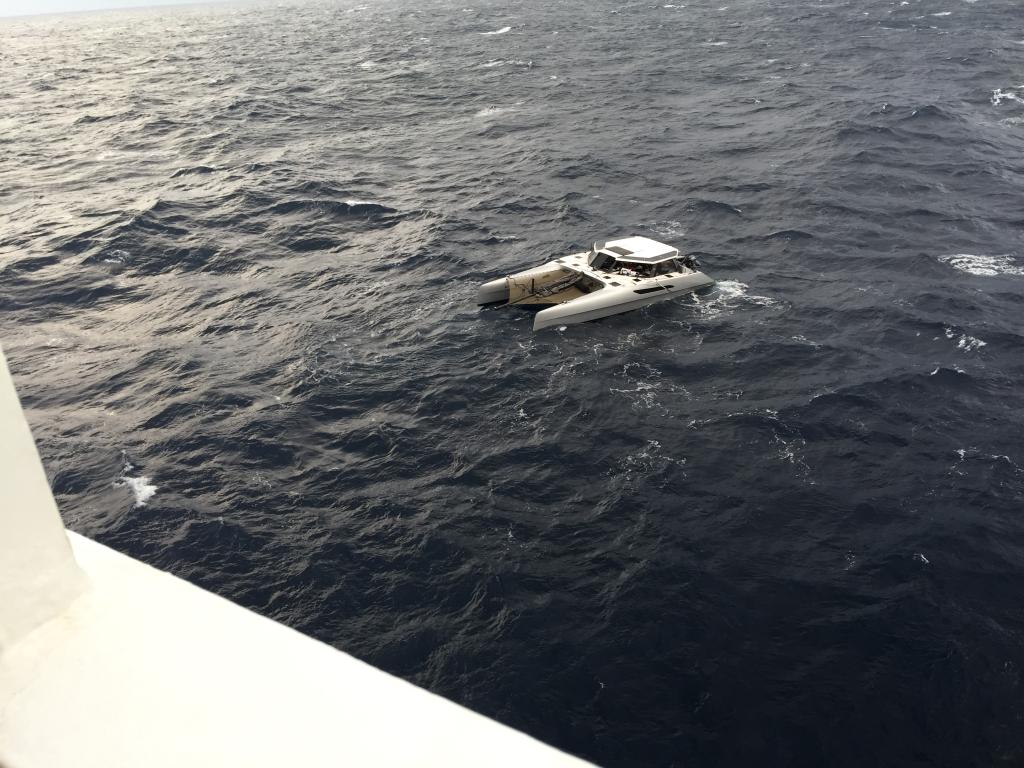 That’s how long the Gunboat 55 Rainmaker was adrift and abandoned in the Atlantic before being found by members of Oracle Team USA while on a fishing trip. The 55-foot Gunboat was spotted with the hull fully intact and according to Gunboat founder Peter Johnstone, she was hauled in shortly after by the 40-foot Luhrs fishing boat, Tenacious.