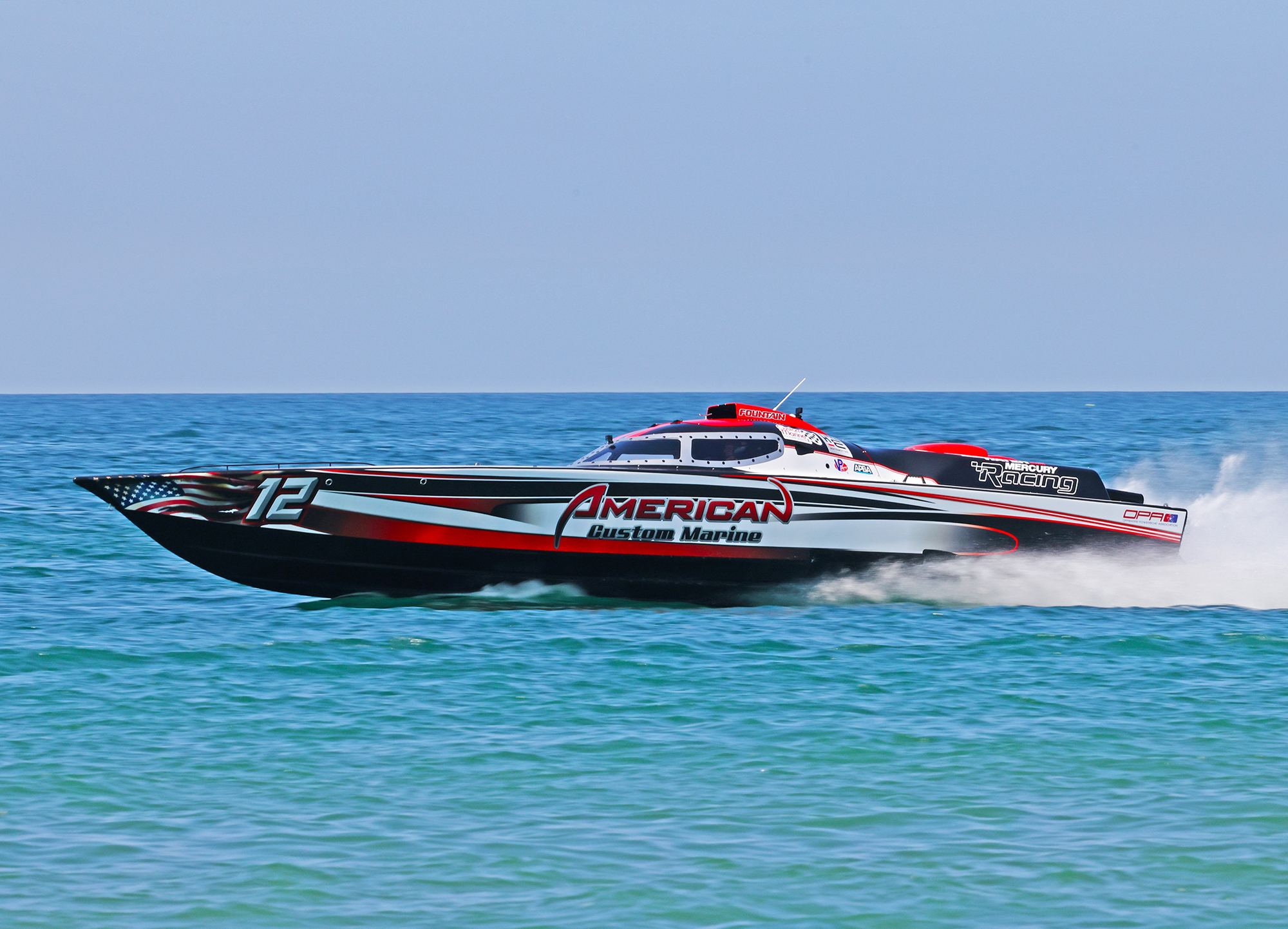 So when a 2011 model 40-foot Fountain came across his path in 2024, Knoblock kept it and created something wild. He restored the canopied V-bottom inside and out and repowered it with Mercury Racing 1550/1350 engines. Then he took it racing with his friend Matt Soper, who earned an Offshore Powerboat Association Bracket 400 Class World Championship in 2022.