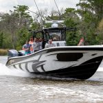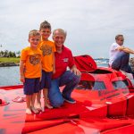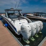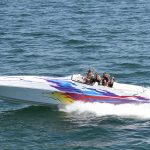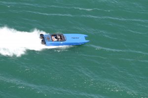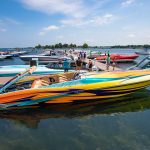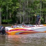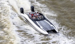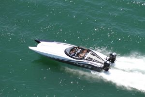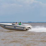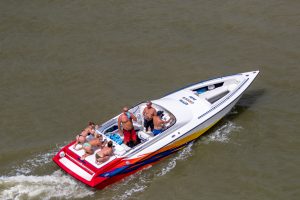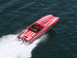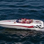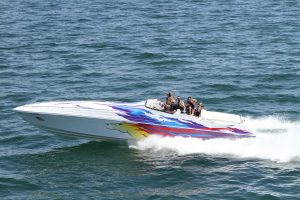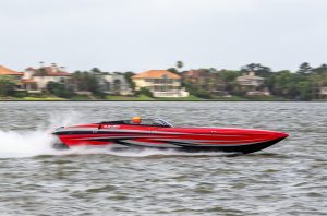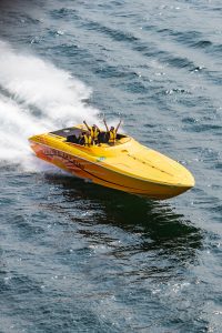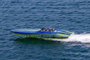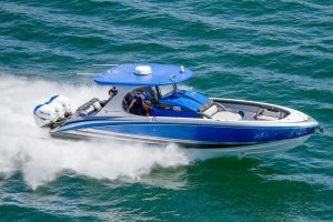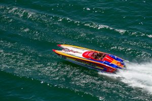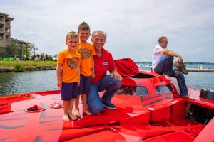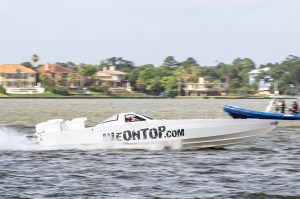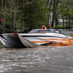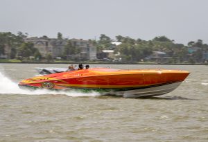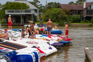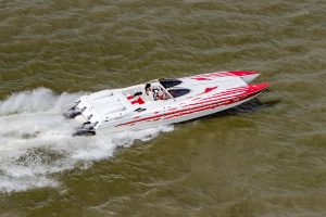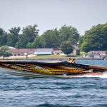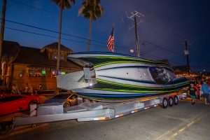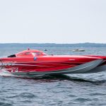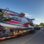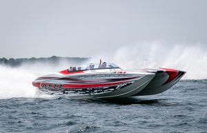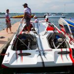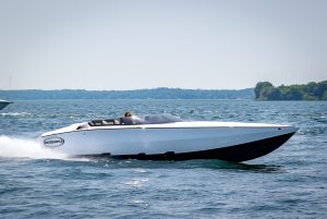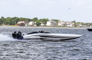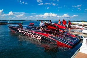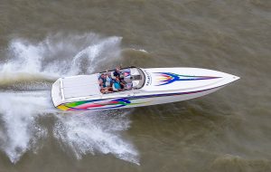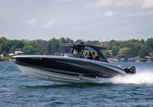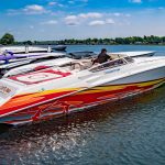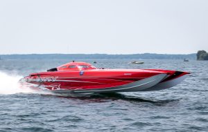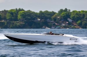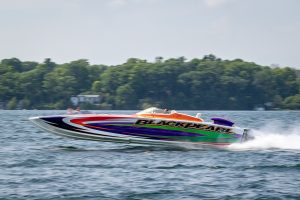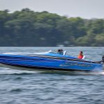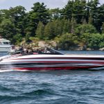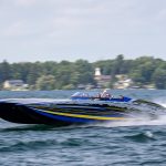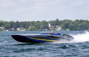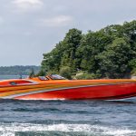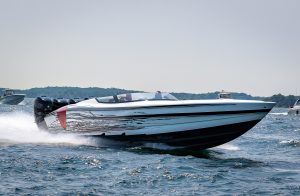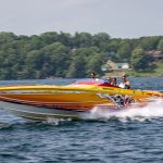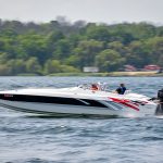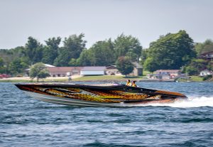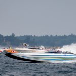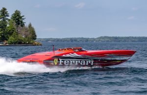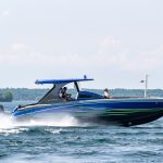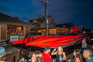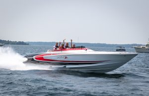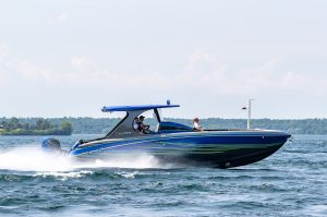 The 2019 event kicked off on Thursday with a street party on Riverside Drive; Friday afternoon brings volunteer rides for around 20 Make-A-Wish kids and their families. “We had an enormous amount of poker run boats whose owners wanted to sign up to give rides to the Make-A-Wish kids and their families,” Cantwell says. “We had more boats than we had passengers. Everybody had smiles on their faces.” Saturday is the main event, a poker run that attracted heavy-hitters like John Woodruff, Bill Tomlinson and Bob Christie, along with sponsors DCB Performance Boats, MTI, Mystic, Outerlimits and Adrenaline Powerboats. The boat count this year was at 110, but could frankly have been much higher. Unfortunately, the water on the Saint Lawrence River was about 2½ feet above the normal level. Consequently, the New York State Park Police—one of the agencies that issue the permits—imposed a limit on the number of boats that could participate in the run.