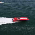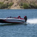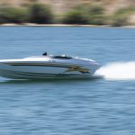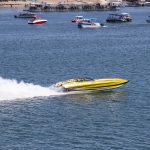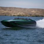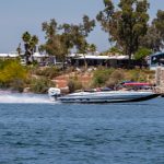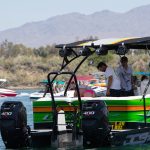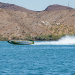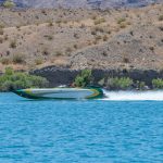 • Coincidentally, Gilbert and Winter were among the big stars during the event’s main event: Saturday’s annual Shootout. Gilbert, driving his famous 40′ Skater Predator, went 185 mph in his second pass, clinching the coveted King of the Desert title. Miranda Jones, driving another 40′ Skater, was named Queen of the Desert for her 128-mph run. Meanwhile, Winter was first in his class driving his 27′ Eliminator at a speed of 104 mph. DCBs were out in full force, with Justin Bach winning the NC31M class in his 21′ DCB (124 mph), company co-owner Tony Chiaramonte winning MC35P and MC 290P classes driving an M35 (169 mph), and M29 (143 mph) respectively.