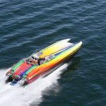 • Throngs of spectators and participants converged on Havasu from across the country to marvel at the wildly popular Street Party on Thursday, April 25. As per tradition, the city’s McCulloch Boulevard was teeming with muscleboats from coast to coast—DCBs, Nordics and Eliminators sharing the stage with MTIs, Mystics and Skaters. In addition to the boats, every conceivable high-performance products was on display as well, including big-horsepower wares showcased by the likes of Imco, Mercury Racing and Teague Custom Marine, with many other services and products vying for attention amid the go-fast products.