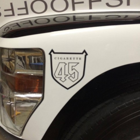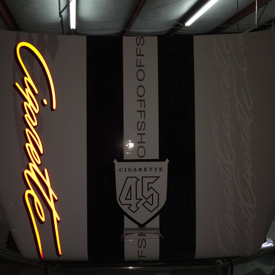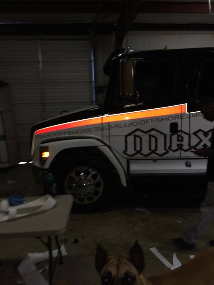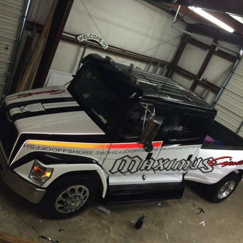 Next step was a custom wrap to match the boat. This job was handled by , Geaux Signs & Graphics of Gonzales, Louisiana. The wrap has special reflective logo’s that brightly reflect in bright yellow shades when illuminated and does an outstanding job replicating the boats paint theme.