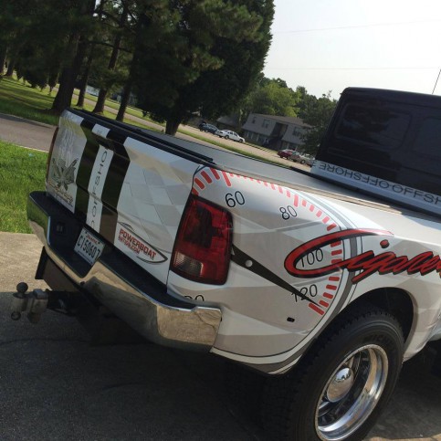 A lot of thought and work went into this truck and it came out great. PowerBoatNation is very thankful for the recognition incorporated into the theme on the tailgate.