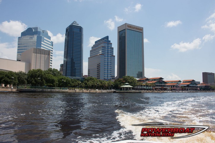 While there were threats for rain for the Saturday Run the weather held and it was a perfect day on the St Johns River. Starting without a hitch all the boats paraded past the downtown Jacksonville Waterfront and cruised to the cards stops. Action at the Outback Crab Shack was full on with great food, live band and a spectator fleet that pushed the attendance well over a hundred boats.