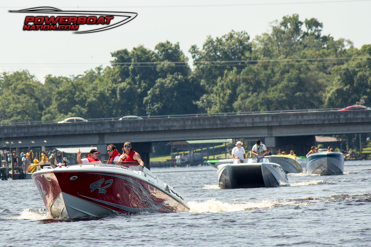 This year’s Jacksonville River Rally Poker Run was a huge success. Powerboat Nation trailered the Cigarette Top Gun up to Jacksonville and ran as a registered entry in this year’s event along with just over 65 other boats. Fridays sand bar raft up and Bar-B-Q was a great start to a wonderful weekend. The Pyburn family were the best hosts along with their great group of volunteers who work hard to raise money for Camp Amigo.