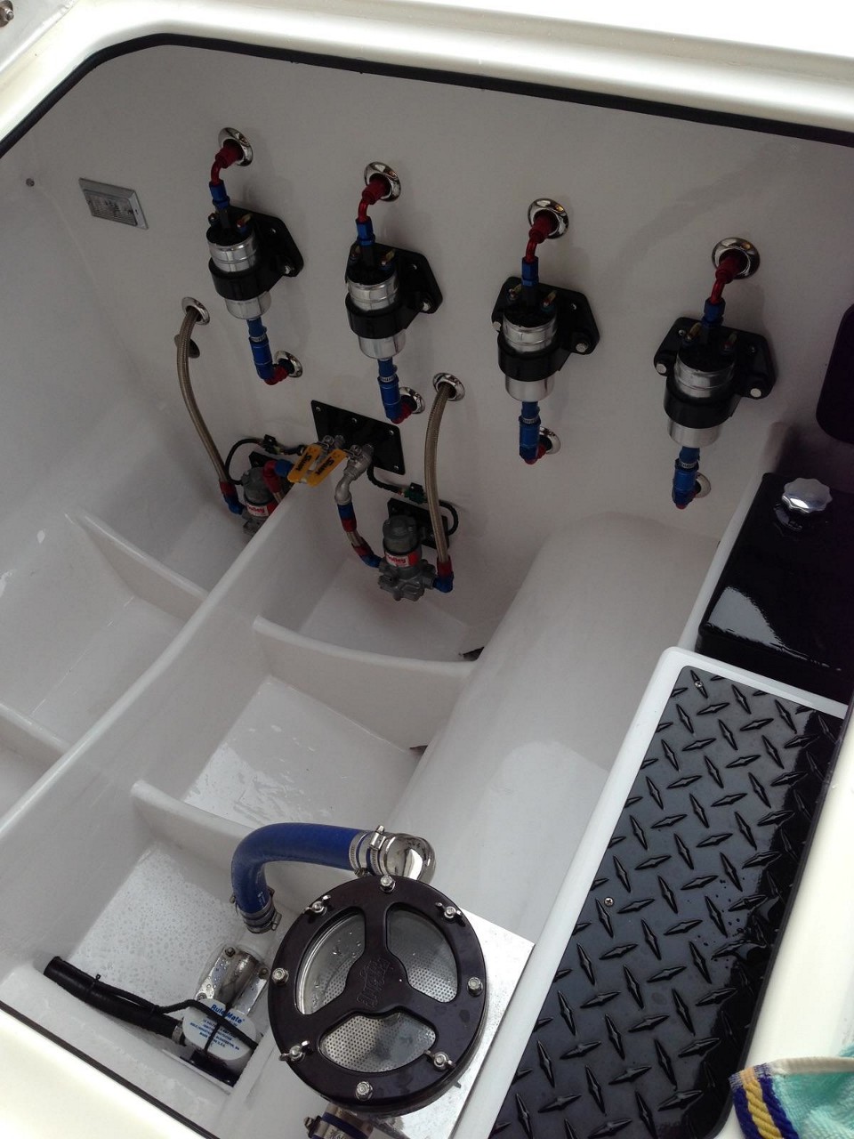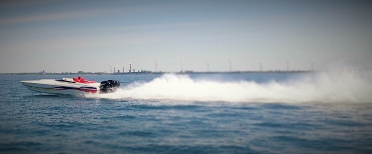 Like most powerboaters, Chris Overkamp of Bow and Stern Marine in North Tonawanda, New York was just looking to pick up a little more speed on his 2000 Spectre 30 running triple Mercury 2.5 Outboards. Perusing the various boating forums most people with the same application claimed that 110 MPH was the most you’d get with that setup.