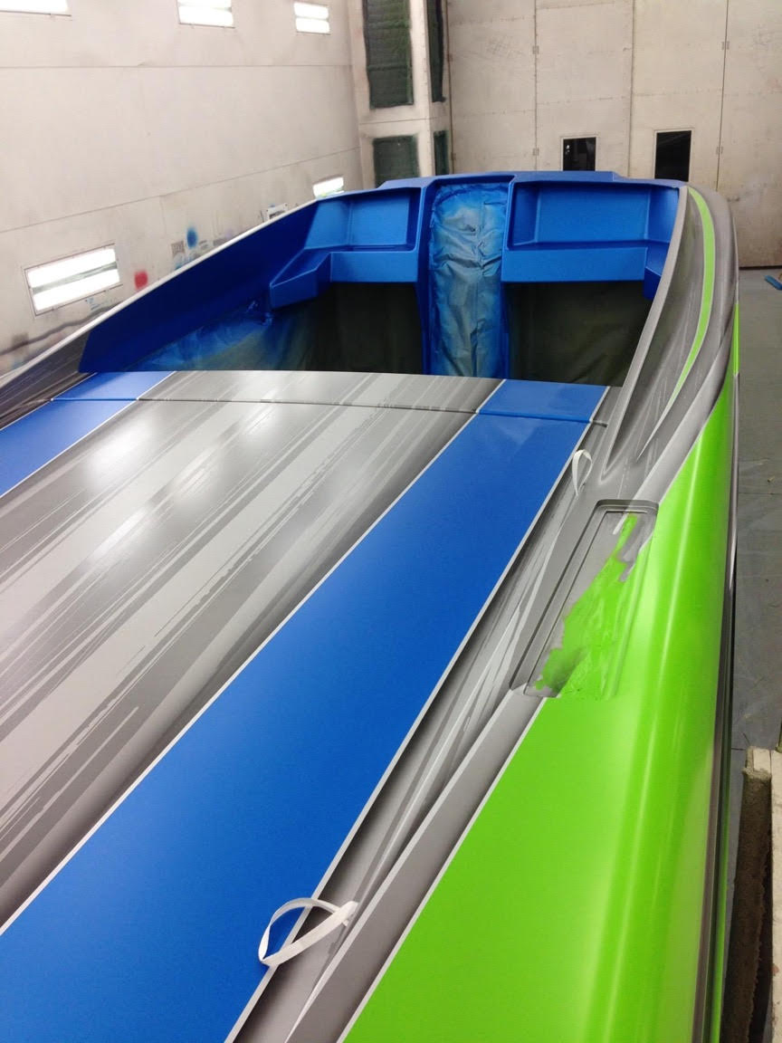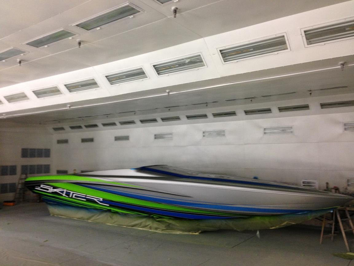 This brand new V from Skater is sure to “make waves” in the V bottom world and in a few weeks after interior and final rigging with Mercury Racing 1100 Turbo Engines is completed, things will really start to take off!
