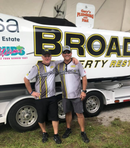 In Super Cat class, Dependable Offshore grabbed the early lead but quickly dropped back to fourth place before bowing out of the race completely. That left Broadco, a 40’ MTI with driver Chuck Broaddus and throttleman Chris Hanley (see photos below), to take the lead. They stayed out way in front for the remainder of the race and took the checkered flag handily. They were followed by Pro Floors Racing, WHM Motorsports and M-CON. Performance Boat Center/Jimmy John’s suffered a mechanical issue and left the race after the seventh of 10 and 3/4 laps.