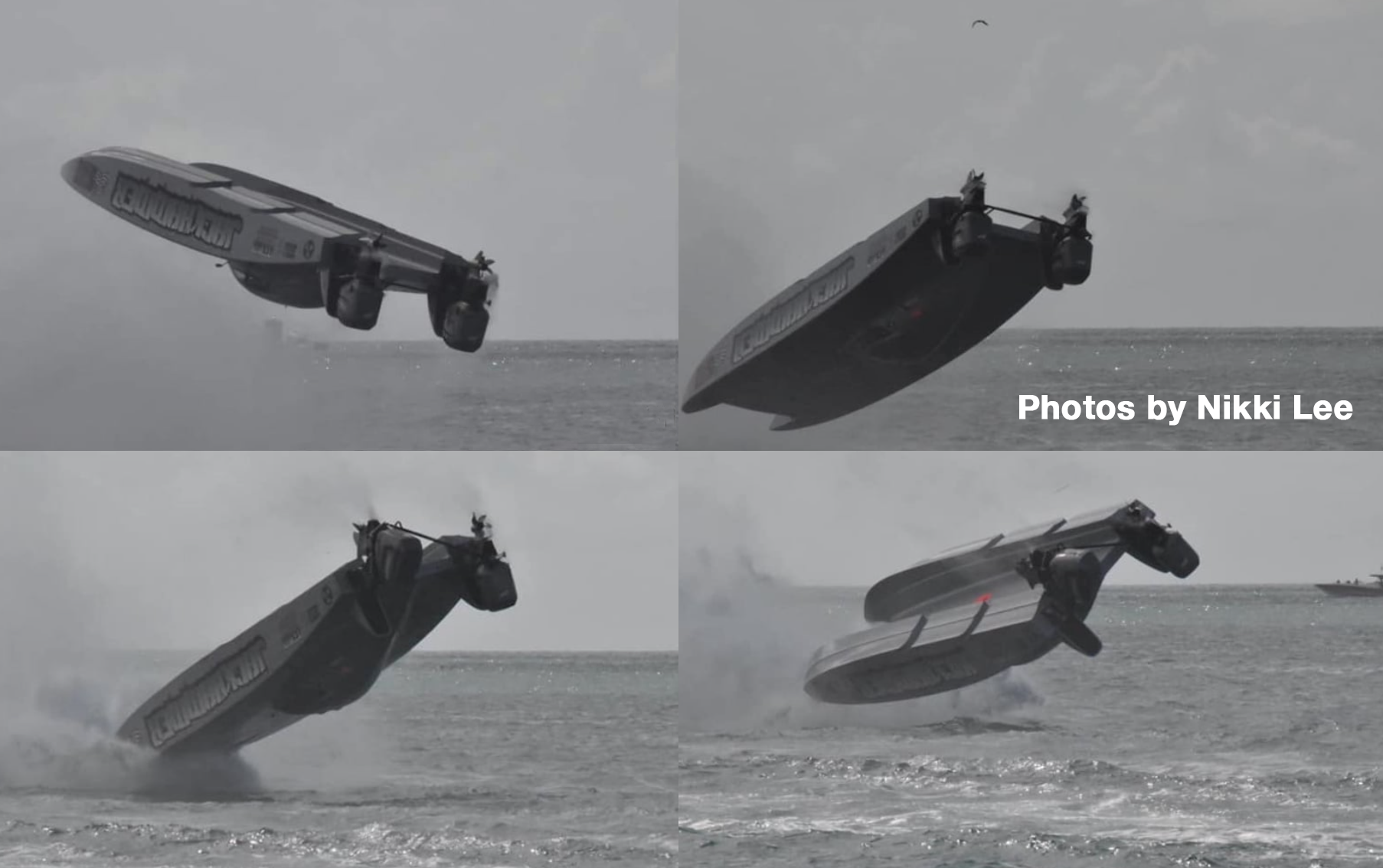 Two Super Stock competitors, LPC and Team Allen Lawn Care, had wrecked on Wednesday, narrowing the field to eight boats. FJ Propeller had been in the lead during Friday’s fifth lap when Jackhammer blew over, causing a red-flag situation. The two pilots, Reese Langheim and Ricky Maldonado, quickly emerged (mostly unscathed), and racing was suspended after the boat was towed off the course, after which it was restarted for three additional laps. At that point, CR Racing grabbed the lead and finished first, followed by Shadow Pirate and Performance Boat Center/Auto Alert. (It was the identical podium finish as Wednesday’s race.) FJ Propeller ended up finishing fourth.