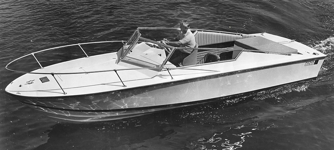 In 1969, the Miami International Boat Show moved from its historic digs at Dinner Key, to the brand new Miami Beach Convention Center. Most of the boatbuilder exhibitors were chapped by the fact the demonstration facilities at Dinner Key were sumptuous, and the ones at the Convention Center were nonexistent. I had just finished my new Nova 24, and had shown it at the New York Boat Show in January, and had invited lots of folks down for a demo ride. The Nova 24 was way different than all the other performance runabouts her size. In New York, we had shown the boat on a special cradle which tilted the boat on its side, and allow ‘lookers’ to see that we had a twin inboard engine v-drive boat with lots of innovations (for the day). All the other boats in that market had sterndrives or outboards. I had always considered the aluminum sterndrive an instrument of the devil (still do), and set about making a very nice inboard boat. The booth was staffed by my French dealer, Jean Claude Simon, and local dealers Skip Allen and Pete Quackenbush. We had an ace in the hole. I had surveyed the area, and discovered that there was place to tie up on the Dade canal, right next to the show. Two palm trees arced out over the water, right next to the Meridien Avenue bridge. The Holocaust Monument is there now. My boat just fit under the bridge at high tide, and we could run demonstrations at will.