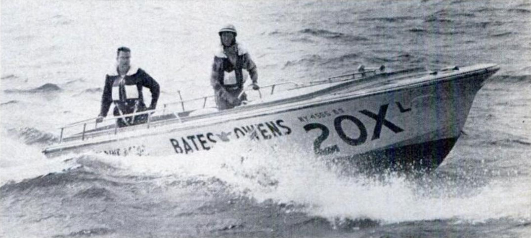 Finally, on July 17th, 1965, at 7AM, we left Jones Inlet, on the Ocean side of Long Island. It was quite foggy, but the highlight of the morning, for me, was the 40’ Hacker Craft pace boat with band leader and hydroplane racer Guy Lombardo at the wheel. Most of us roared off into anonymity, which is further up the coast. Aronow couldn’t get on plane. This apparently made him angry. It was said that one could see the veins in his neck and forehead from the Statue of Liberty. We led the race (We think. You couldn’t see a goddam thing) to Shinnecock Inlet, threw the waterpump belts, and fried the engines. Merrick was sinking nearby. All in all, the Florida boys were not putting on much of a show. Our last shred of credibility rode with the big Pearson Diesel, with Big Bruce and Jim. At least, they were in the lead, and if they won, we would not need to retract all the rotten things we had said to the locals.