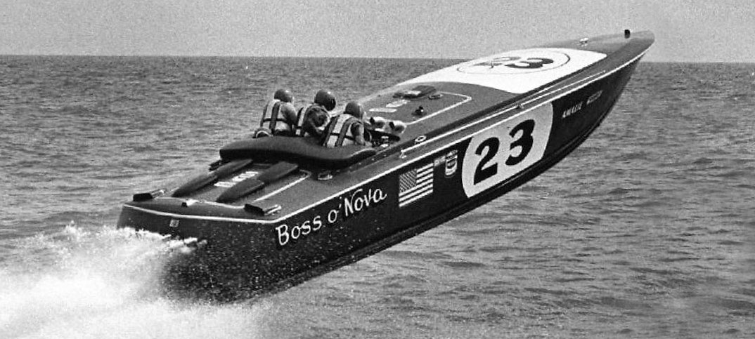 Unlike many social strata situations, racers of all kinds worked and played together on a friendly field for a time. Owners of large companies don’t usually ‘hang out’ with the guy from the stockroom, but offshore race boat owners often did. A camaraderie existed that encouraged the two sides to play together. Don Aronow, Bill Wishnick, Merrick Lewis, Dick Genth and others were genuinely friendly with scum like me, and treated us with friendship and respect. For the first 15 years, from 1956 to 1970, we were one happy family. In 1970, Bill Wishnick had won his wings, to be principal driver of a top offshore boat. Bobby Moore and I had taught him well, and he was a competitive sumbitch. At this point, Wishnick bought a 32’ red Bertram race boat from Mr. Kiekhaefer of Mercury Marine fame, with the first ever set of #3 Super Speedmaster outdrives. He named it “Boss O’ Nova”. It was probably the best offshore race boat in the world at that time, but it had one tiny idiosyncrasy. King Kong could not steer that boat with one hand, and throttle with the other. All the power for the steering came from Mr. Wishnick’s right arm, which was accustomed to nothing heavier than a Mont Blanc pen. For most races, just Bill and Bobby Moore crewed the boat, and in the 1969 or 70 Houston Channel Derby Race, from the San Jacinto Monument to the Texas City Dike (I think her name was Marge), they went around the south checkboat four times before Bobby could help pull it out of the turn. The birth of the throttleman.