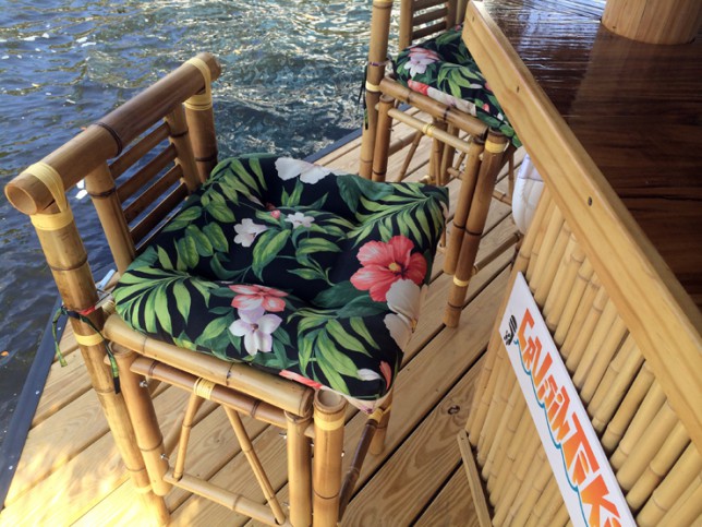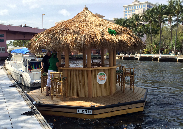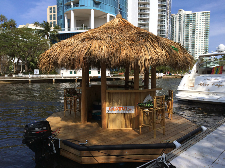 If you’ve seen him out on the water near Ft. Lauderdale then you know what we’re talking about and you probably couldn’t help but stare and take a few photos or video. The vessel, equipped with stools and a circular bar top—even a fridge, wet bar and LED lights—is a prototype for the model Darby invented himself, which he’ll be selling around the country. (Three Cruisin’ Tikis were already sold before his first boat was even in the water, according to Darby.)