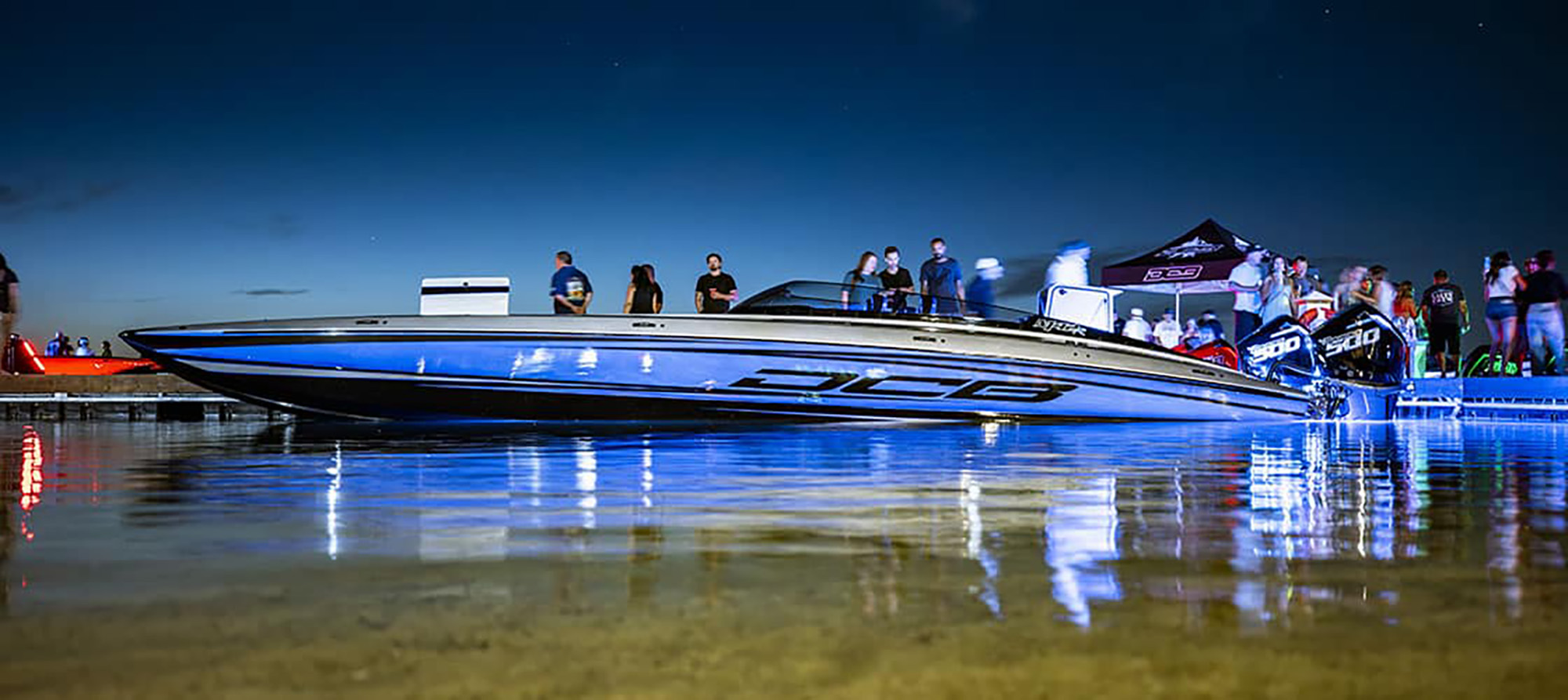 Like the Lalondes, Scott Grants of Oswego, N.Y., considers the St. Lawrence River in the 1,000 Islands area home-water. So what better place for the longtime performance-boat owner to debut the first Platinum Powerboats 428 catamaran? Though the catamaran was built in O’Fallon, Mo., the 1,000 Islands Charity Poker Run presents the perfect homecoming stage for the 42-footer.