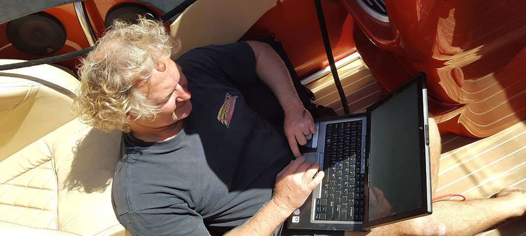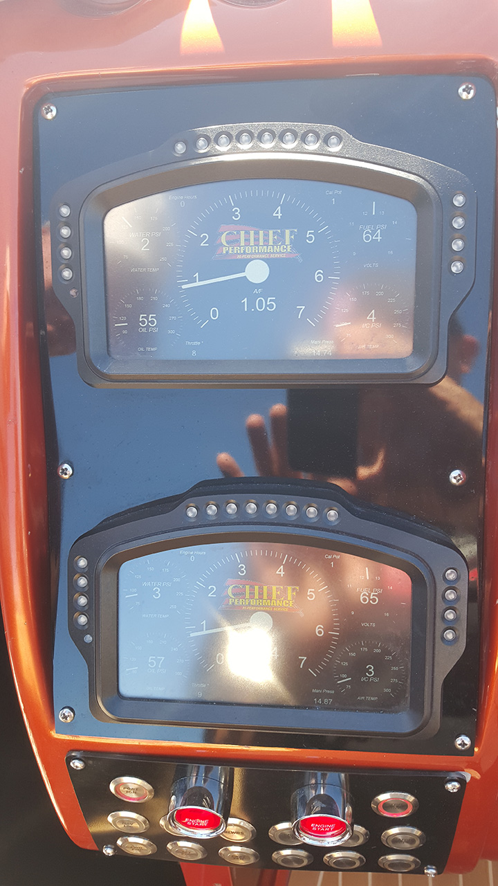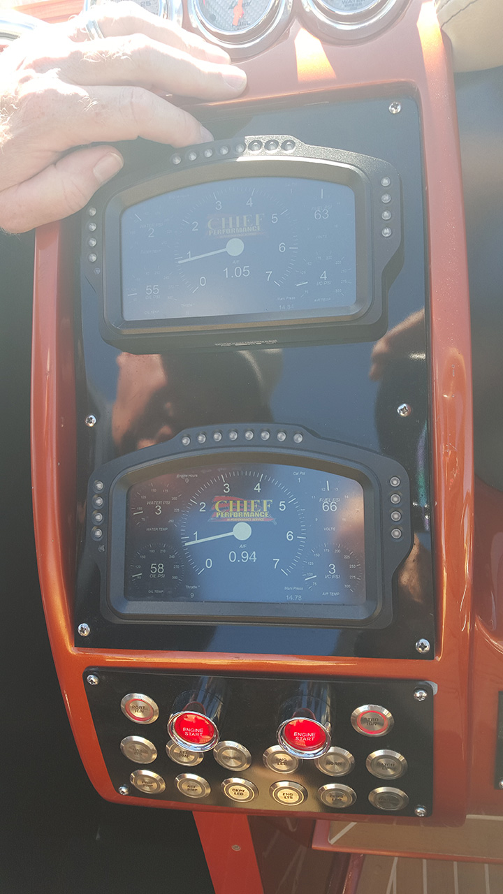 In the latest case, call him right before boat school when you are about to go on a 44 Outerlimits with Chief 1350’s turning Arneson drives, and he is at the boat ramp, ready to jump on the boat and plug in while you run the boat steady at different RPM’s to make sure the you are completely happy with the boat’s performance and full potential!