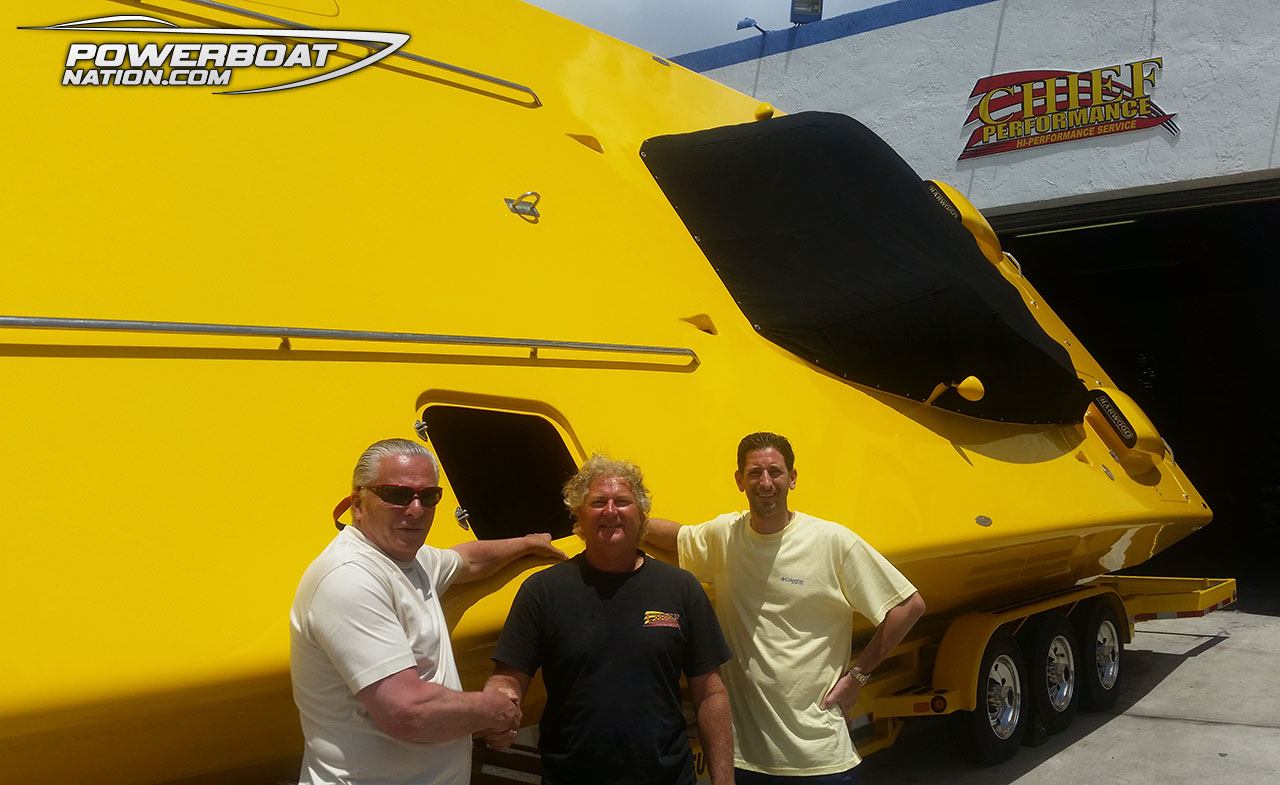 Nothing rests at Chief Performance these days. Just after completing the super successful 1350 Turbo Install in Pure Platinum II for David Southern. The crew at Chief turned had to complete a big re engine job on the former WHM Race boat now know as Top Tomato and owned by Sal Sciandra Sr. and son Sal Sciandra Jr. from Toms River New Jersey.