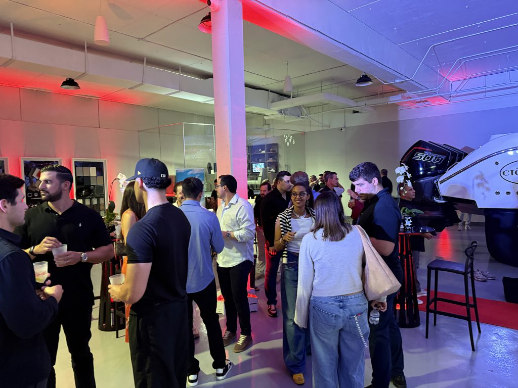 The group mingled among the showroom goodies, which now included a couple of Cigarette center consoles