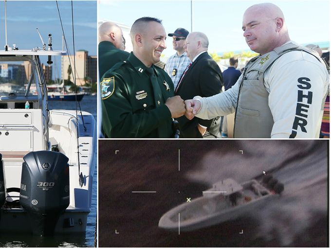 Early Christmas Eve morning three boat thieves made off from a Florida harbor with a stolen 36 foot go-fast boat in hopes of fleeing to Mexico with their unearned prize. Beginning at 2am the alleged boat thieves started their escapade by ramming a sheriff’s boat in hopes of disabling them, but the craft was able to maneuver away at the last second before being run over and they quickly recovered in order to chase down the stolen powerboat.