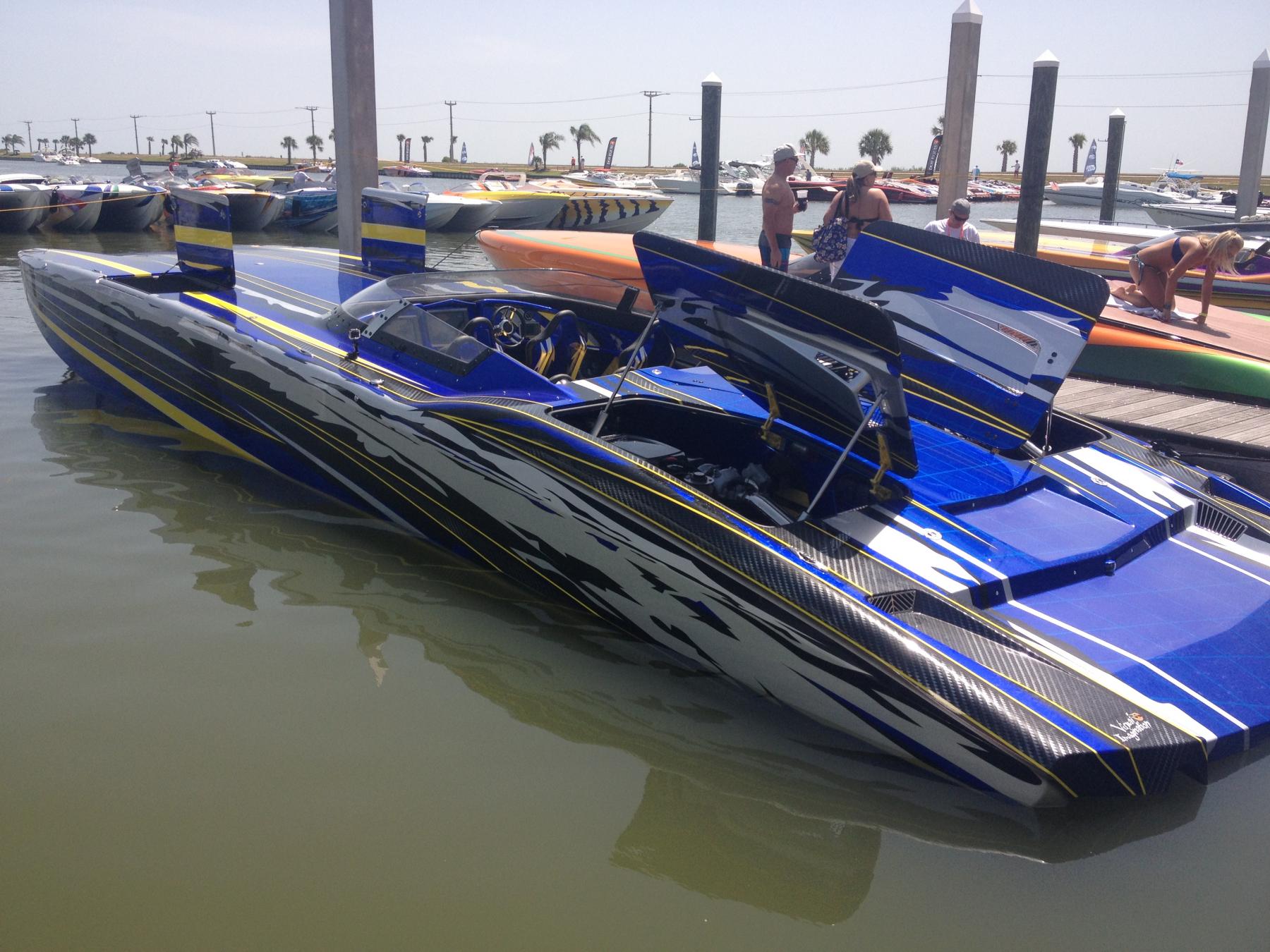 Dave’s Custom Boats rolls out for the rest of the 2013 Poker Run Season. They already have some big events under their belt earlier this year, Miami Boat Show Poker Run, DCB Regatta, and Desert Storm. This previous weekend Win Farnsworth’s 41 was at the Texas Outlaw Challenge and now they are off to many more events, trying to get to as many as they can get in. Building Boats, running a business and having so many days away on the road might seem like a dream but it can become a real challenge. Tony called me today from the road in West Texas, anxious to get to the water over the weekend and leave the long and straight road behind him. And they did just that!