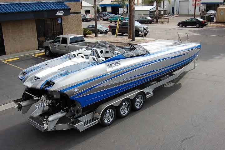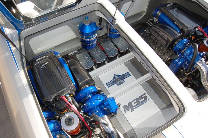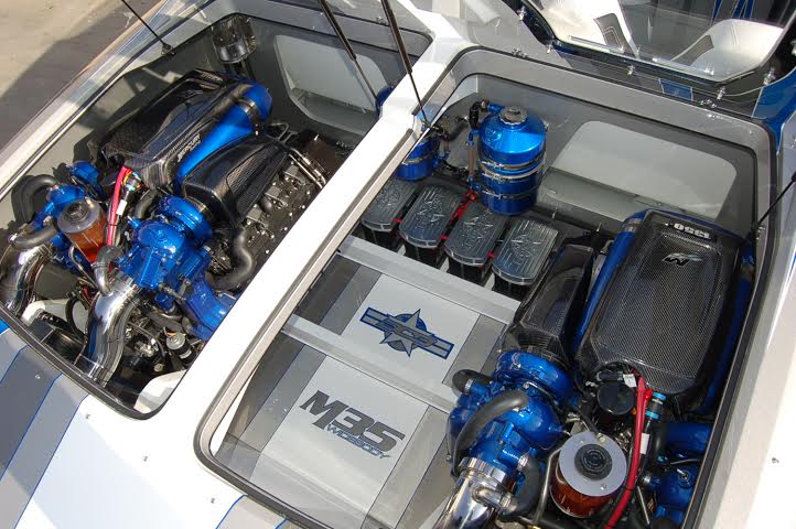 The Lake of the Ozarks shootout is THE PLACE to show how well they run. As I write this , Win Farnsworth’s M41 “Silver Lining”running Mercury racing QC4v 1350’s is en route as well as a brand new M35 also with Mercury Racing 1350’s. Tony Chiaramonte from DCB tells us both boats will l run in the shootout