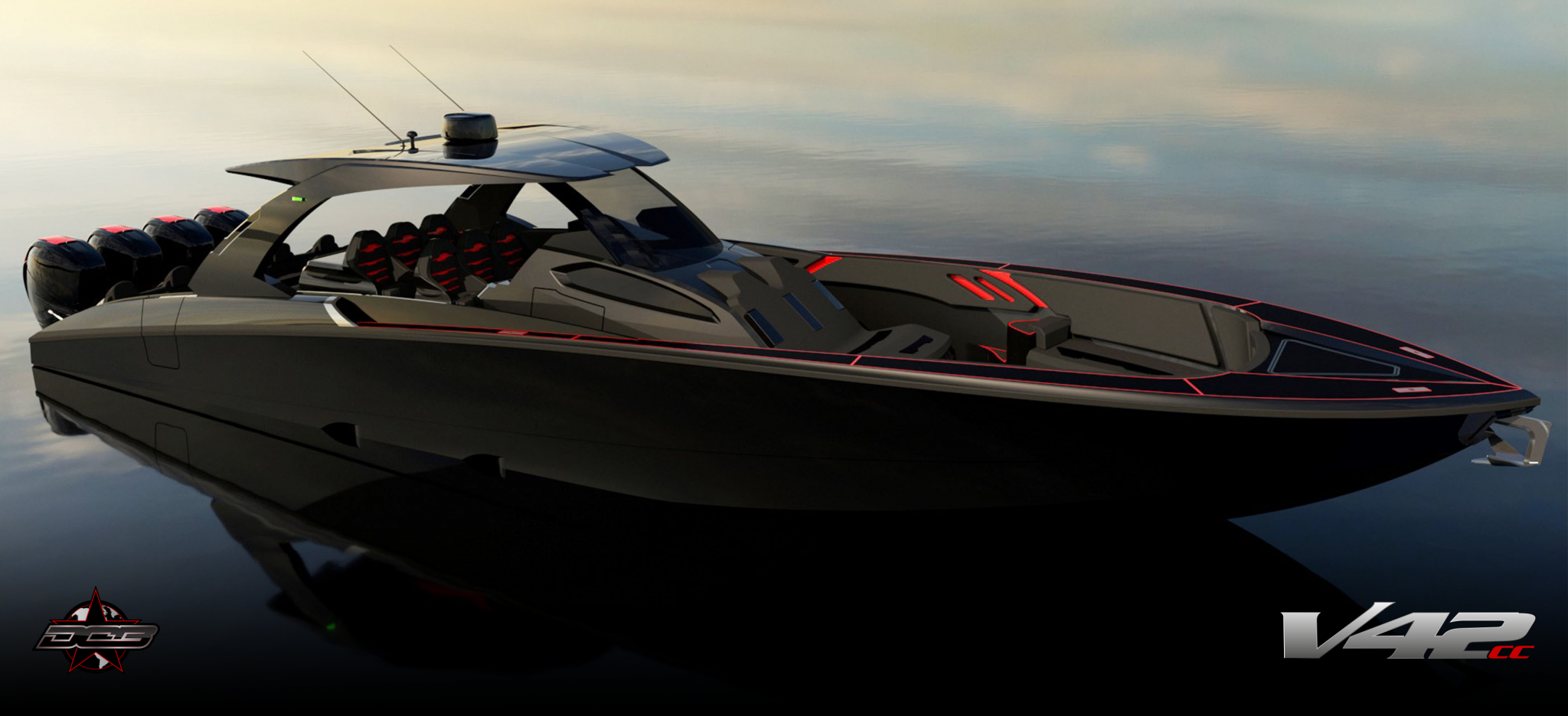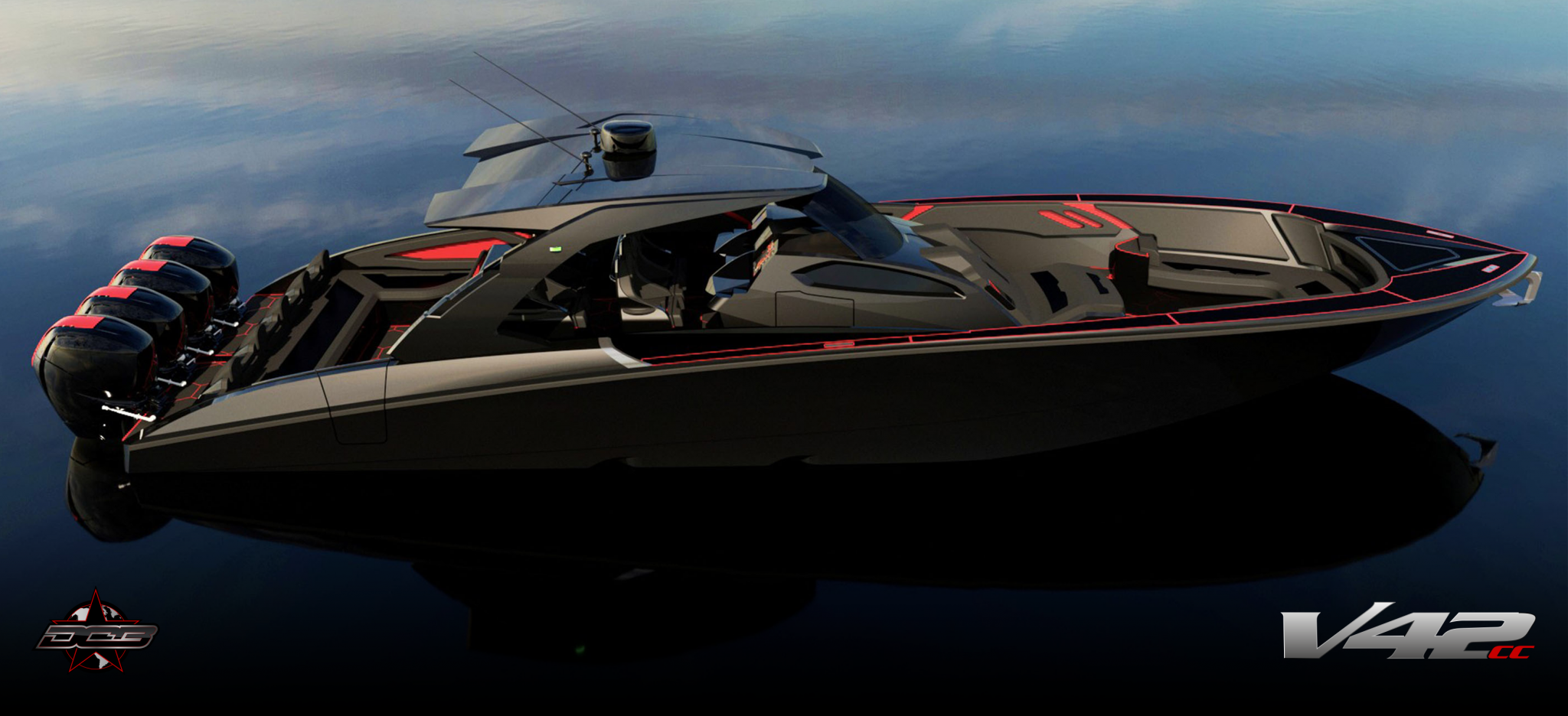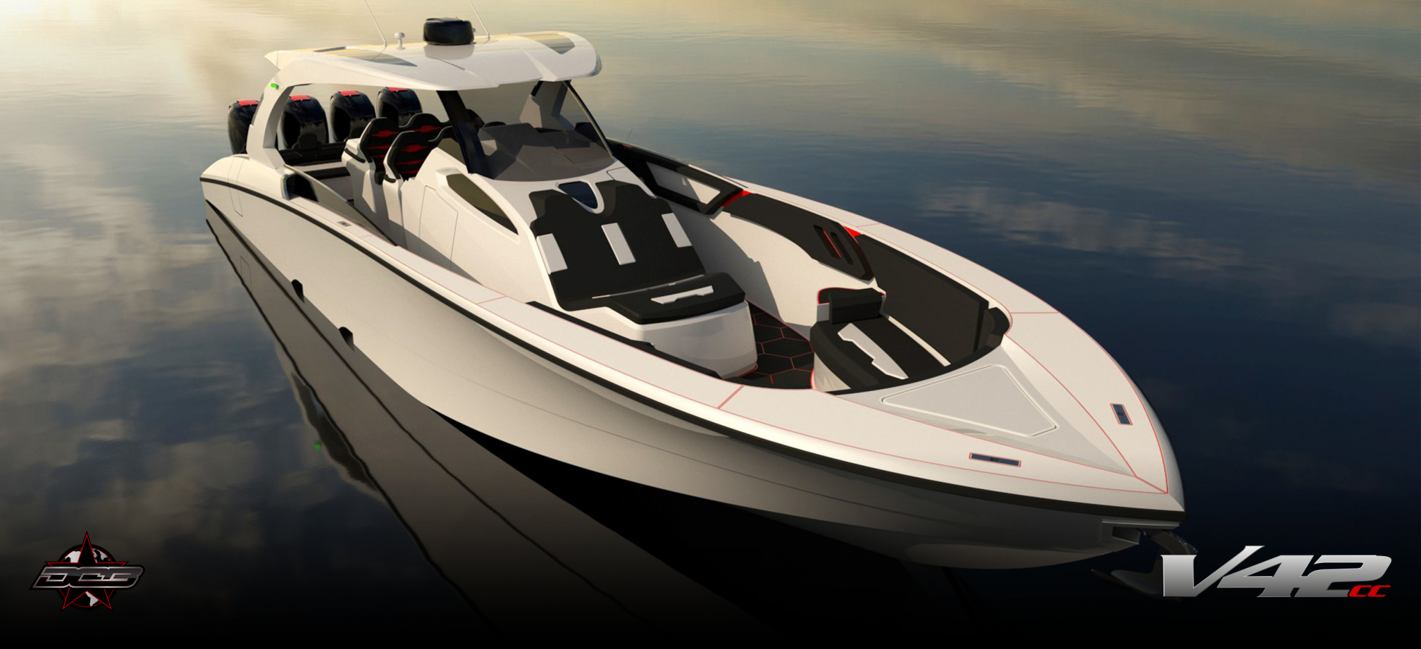 The design of the boat—branded as “V42CC,” although Johnston said that nomenclature might change—is a collaboration with SFG Yacht Design. The boat will be equipped with three, four or five Mercury Racing 400R outboards.