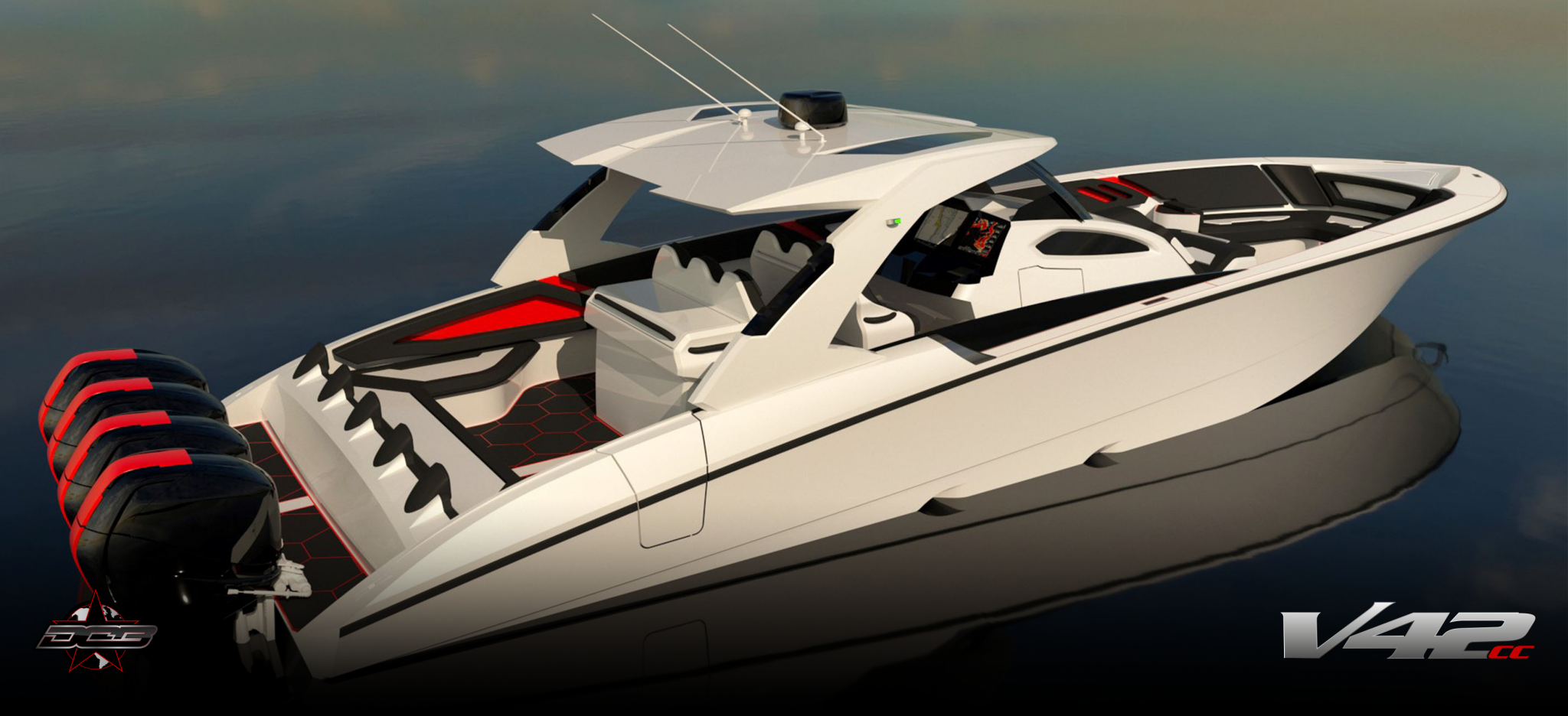 According to company owner Jeff Johnston, the 42CC has been “a long time coming—we’ve been asked to build one for the last two seasons, and the time finally came to design and tool one. We’re very excited about it.” Johnston said that the concept is basically done, with the engineering phase to follow; artist’s renderings of the boat have been released and depict an impressive quad-outboard concept sure to compete well with center-console offerings from the East Coast. DCB already has two orders for the 42 and is currently fielding commitments for hulls 3-5.