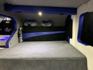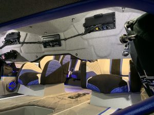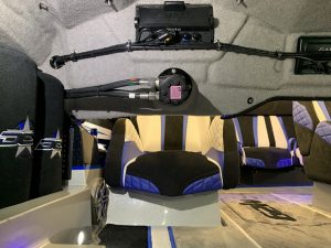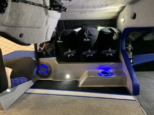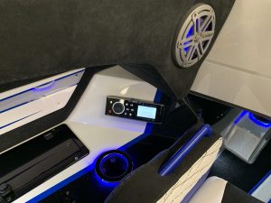 Stage II stereo – Fusion head unit | Two (2) JL Audio amplifiers | Eight (8) JL midrange speakers with LED | Two (2) 12” JL subwoofers