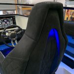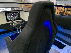 Another aspect of the M33R that the couple praises is its beautiful construction and appearance. “DCB has been going over-the-top with their interiors,” Budge says. “The interior of this boat is the nicest one we’ve had so far. The quality of the stitching and the Alcantara fabric is really unbelievable. We’ve only had the boat for a few days, and people who have seen it just go, ‘Damn!'”
