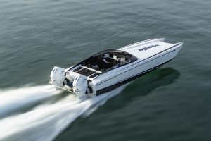 Introduced in 2018 close on the heels of DCB’s largest model to date (the M44), the M33R was first tested by Speedboat Magazine in its August 2018 issue. It remains one of DCB’s newest models, joining the M28, M29, M31, M35, M41 and M44 in the builder’s ever-growing stable, with an M37 to be added to the ranks later in 2020. (A new review of an M33R will be appearing in Speedboat’s forthcoming April 2020 issue.)