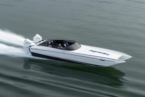 Chad Budge‘s passion for powerboating didn’t begin with DCBs, but it’s a pretty safe bet that it ends there. The M33R that DCB delivered to Budge last week is his fourth DCB, his second M33R, and his first to be powered by Mercury Racing 450R outboards. It may not be his last DCB, but it’s hard to imagine him transitioning to another builder—he’s as smitten with DCB as any customer we’ve ever met.