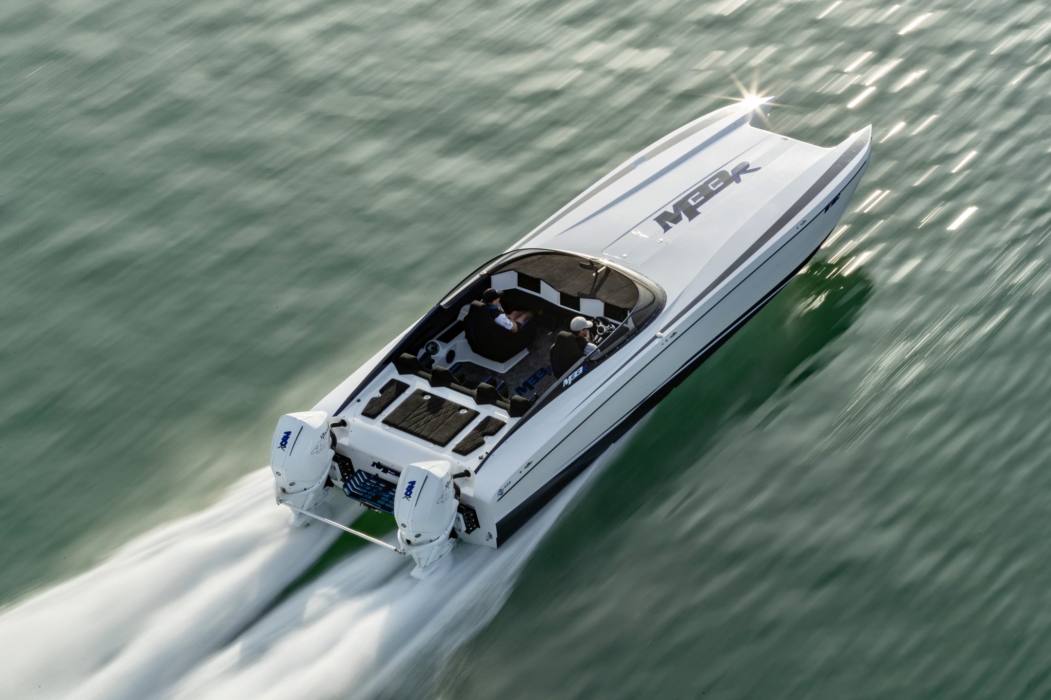 • Power: Twin Mercury Racing 450Rs (white cowlings – $4,200/set upgrade)