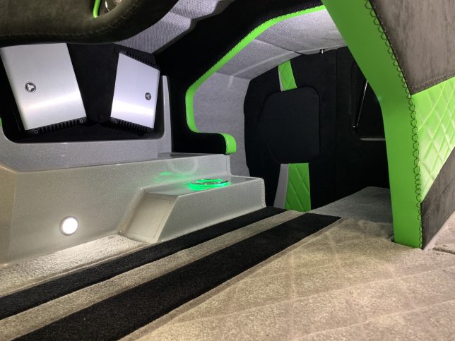 • Stage III stereo – Fusion head unit | Two (2) hard-wired remotes | Three (3) JL Audio amplifiers | Twelve (12) • JL Audio M6 midrange speakers with LED | Two (2) 13” JL Audio W3 subwoofers