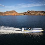 Now that he’s had some time to drive the boat on Lake Havasu, prior to having it transported back east, he couldn’t be happier by the DCB’s performance. “It’s mind blowing—just unbelievable,” he says. “The boat is so stable and so smooth. The power and midrange punch of the 450s is truly extraordinary, and it gets up to the top end real quickly. I hate to overuse the term, because you hear it so often, but it runs like it’s on rails. And it turns really tight and really smoothly, and handles so well.” He says he expects to see a top speed of around 125 mph.
