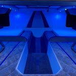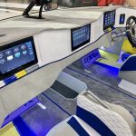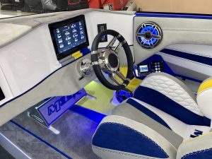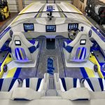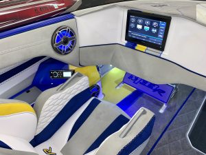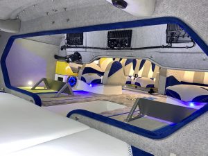 James traveled to the facility during the build a couple of times and says he was impressed by the process. “It’s like building a custom home,” he says, “right down to the color of the thread I wanted to the upholstery and fabrics and all the different panels sections. They even went the extra mile on things I hadn’t even thought about, like adding more LEDs underneath the boat.”