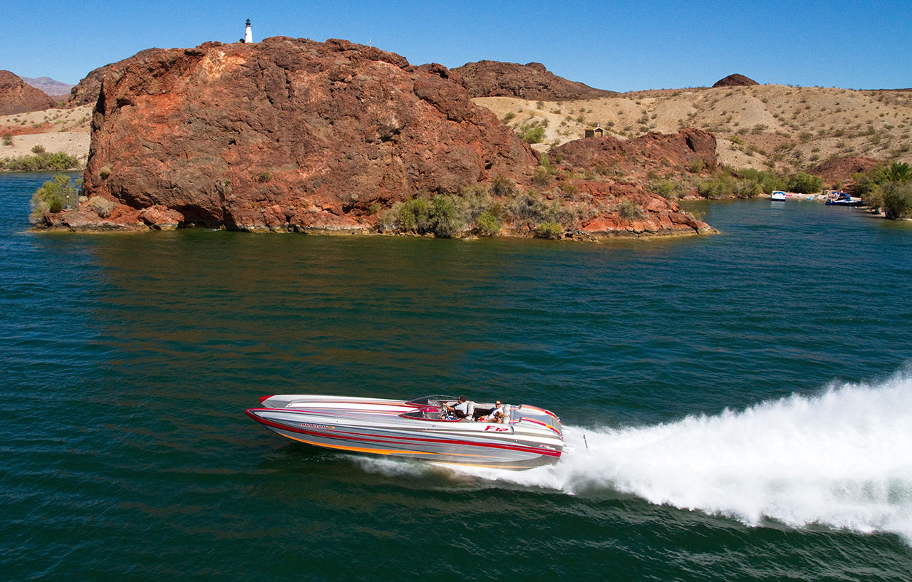 This past weekend Dave’s Custom Boat owners from all over North America converged on Lake Havasu for the DCB Owners Regatta. Owners came in from as far away as Oklahoma and Ohio as well as some favorite Canadians who all towed down to Havasu. A wide range of DCB’s showed up, old to new and small to big. DCB’s sales and customer service guy, Tony Chiaramonte told us there were early Mach 22’s, outboard boats, and both of the new M41’s. All kinds of DCB’s everywhere, so many in fact Tony said they ran out of room at the Nautical Inn with at least 60 boats in attendance and over 300 people.