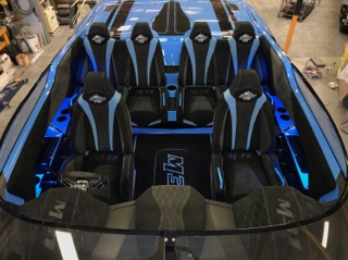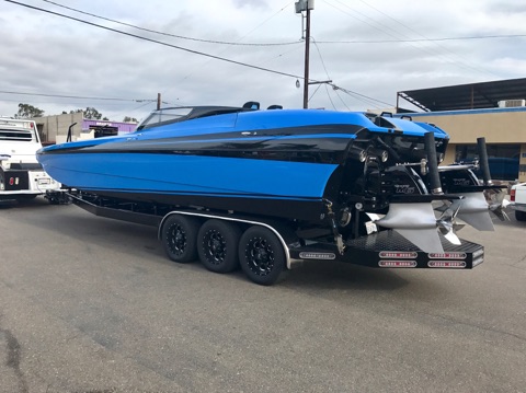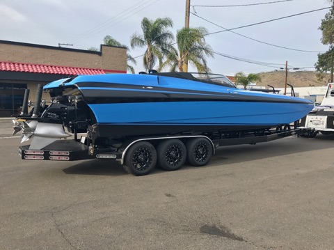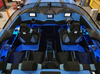 DCB has just revealed their brand new 2017 DCB M31 Widebody just in time for Desert Storm. This new boat is easily identifiable in DCB’s customary paint scheme and features only the newest and latest tech to be available in the marine industry. But where this boat differentiates itself from others is in the specific color blue that was used to paint it. This color was intended to match the blue of the latest Lamborghini Aventador and we can honestly say it looks just like the car color!