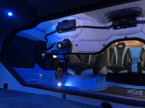 · One 8” Garmin 7608 GPSMAP touchscreen, linked to Garmin VIRB that is custom mounted to a billet bracket attached to the center windshield support