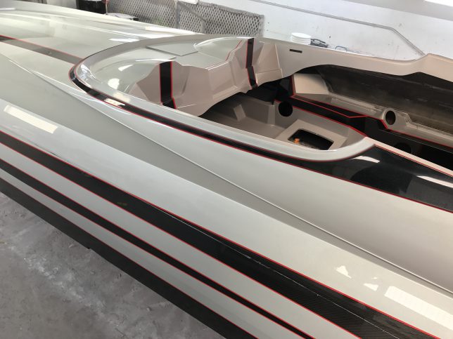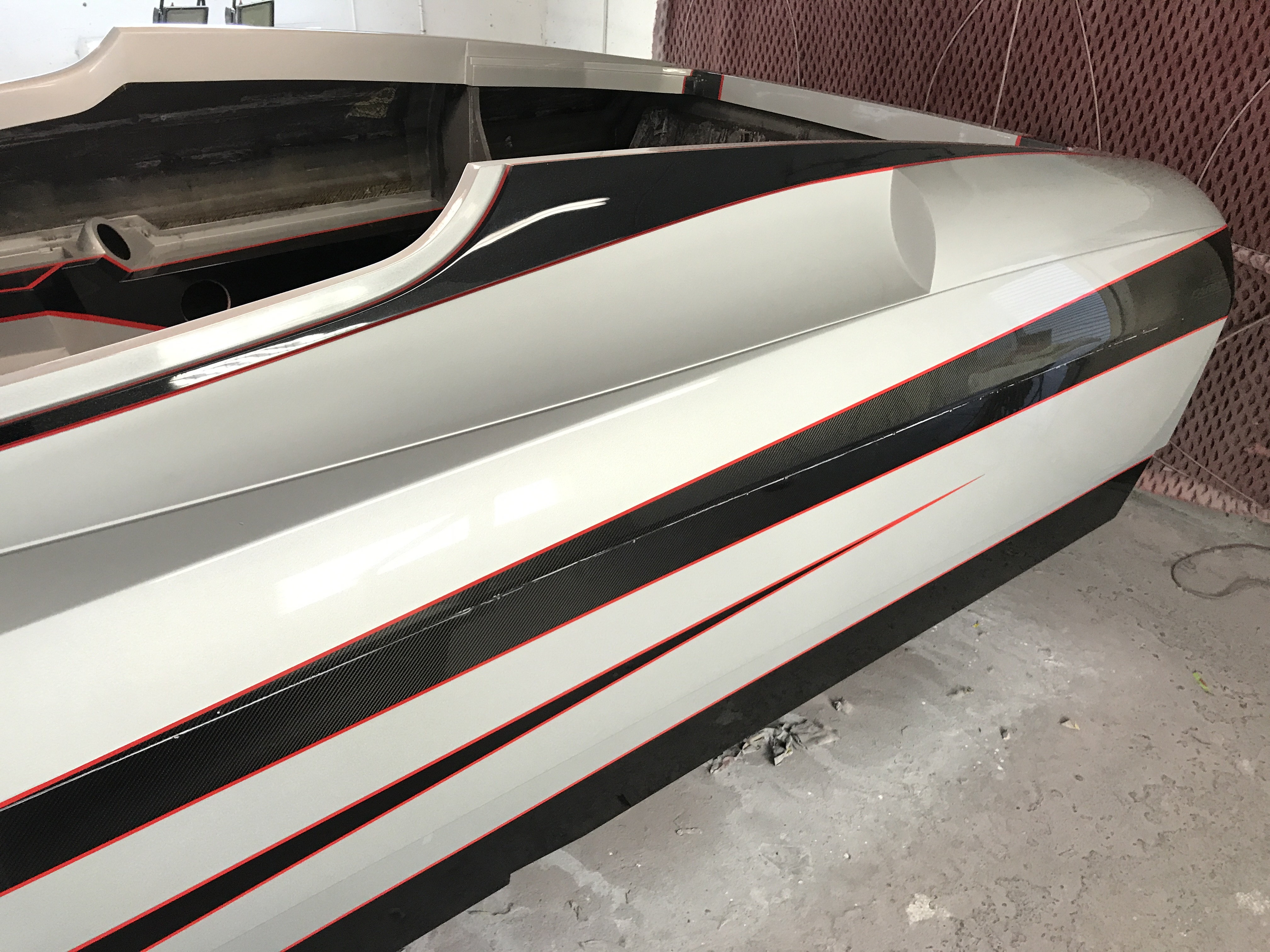 · Exotic silver gelcoat, with a few areas of exposed carbon “Carbon Edition”