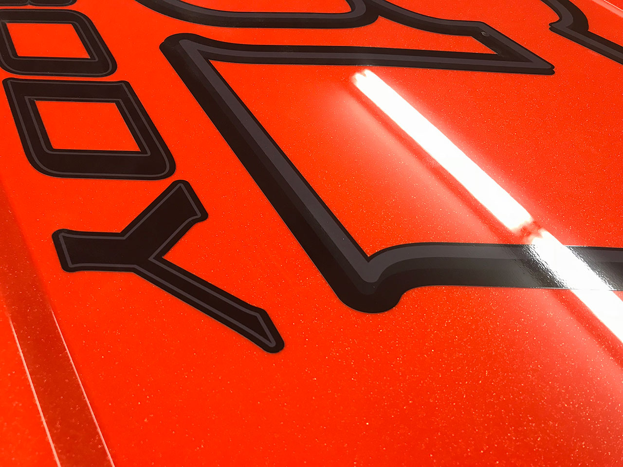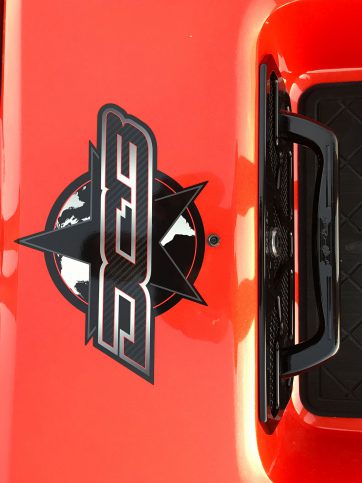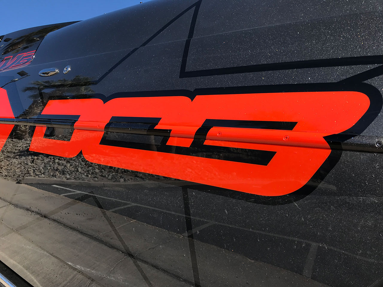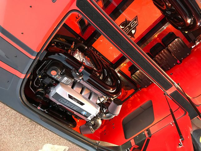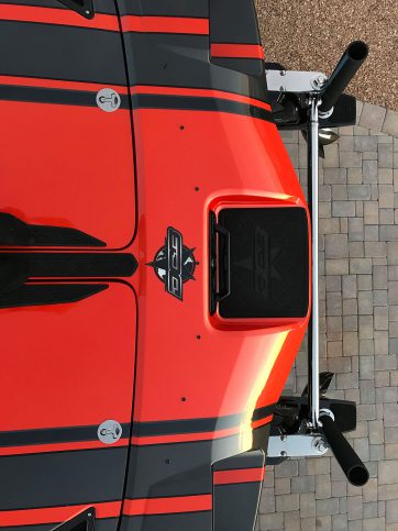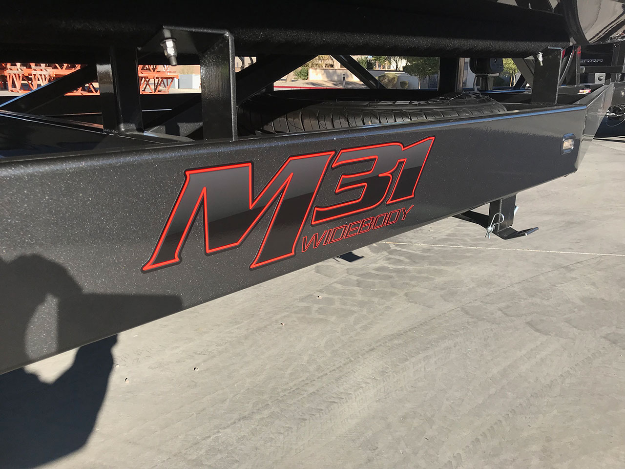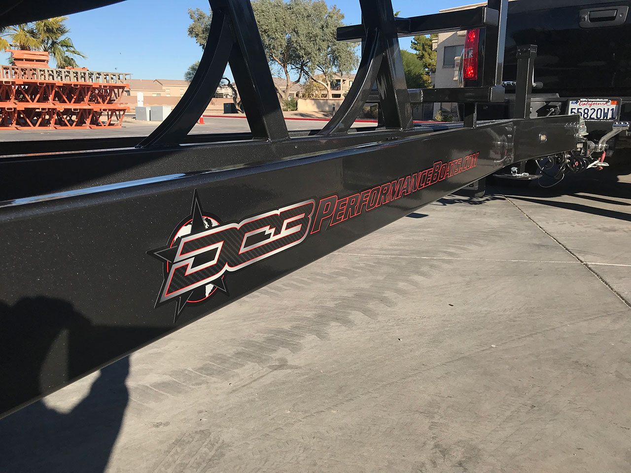 · Extreme Custom Trailer, triple-axle with customized 18” rims, SS fenders and triangular drive guard.